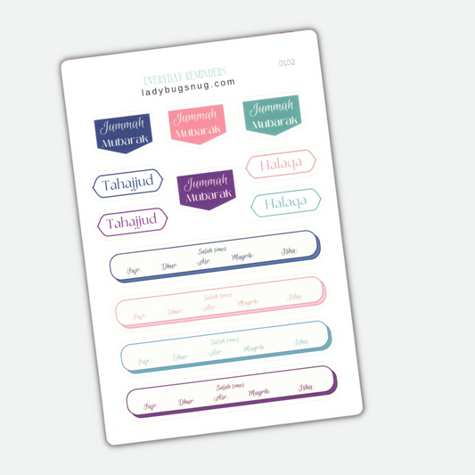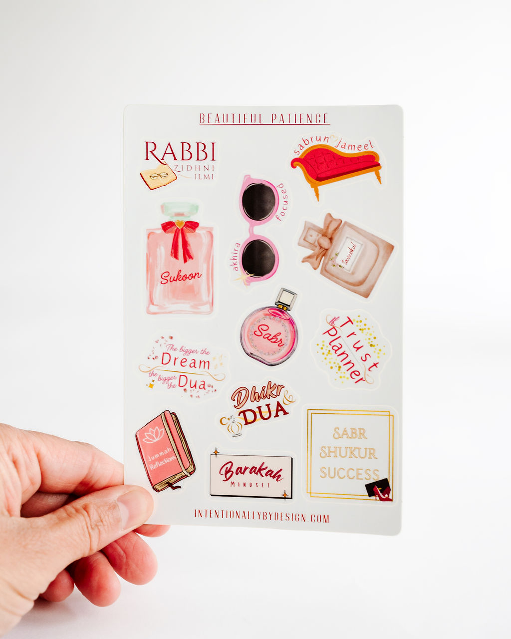 Add a touch of joy and inspiration to your journaling experience with our faith-inspired journal and planner stickers. Imagine transforming your planner or journal into a sanctuary of faith, adorned with beautiful Islamic stickers that resonate with your soul. From Bismillah to Alhamdulilah, make every page shine with gentle reminders of your faith, guiding you through each day with purpose and reflection. Ready to infuse your life with joy and meaning?