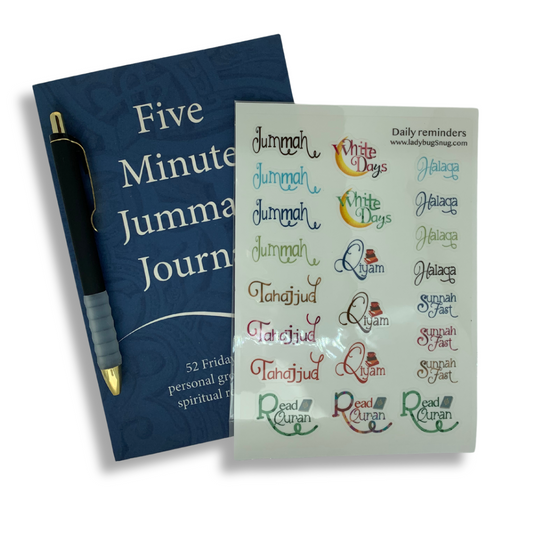 At Intentionally by Design, we offer a unique blend of Islamic-inspired planning and journaling tools for those seeking to deepen their spiritual connection and enrich their daily lives. Our products include the Five Minute Jummah Journal and Islamically-inspired planner stickers, designed to infuse your daily routines with mindfulness, reflection, and faith. Whether you're a dedicated Muslim seeking to deepen your spiritual connection or someone yearning for greater mindfulness in your daily life, our products are designed with you in mind.